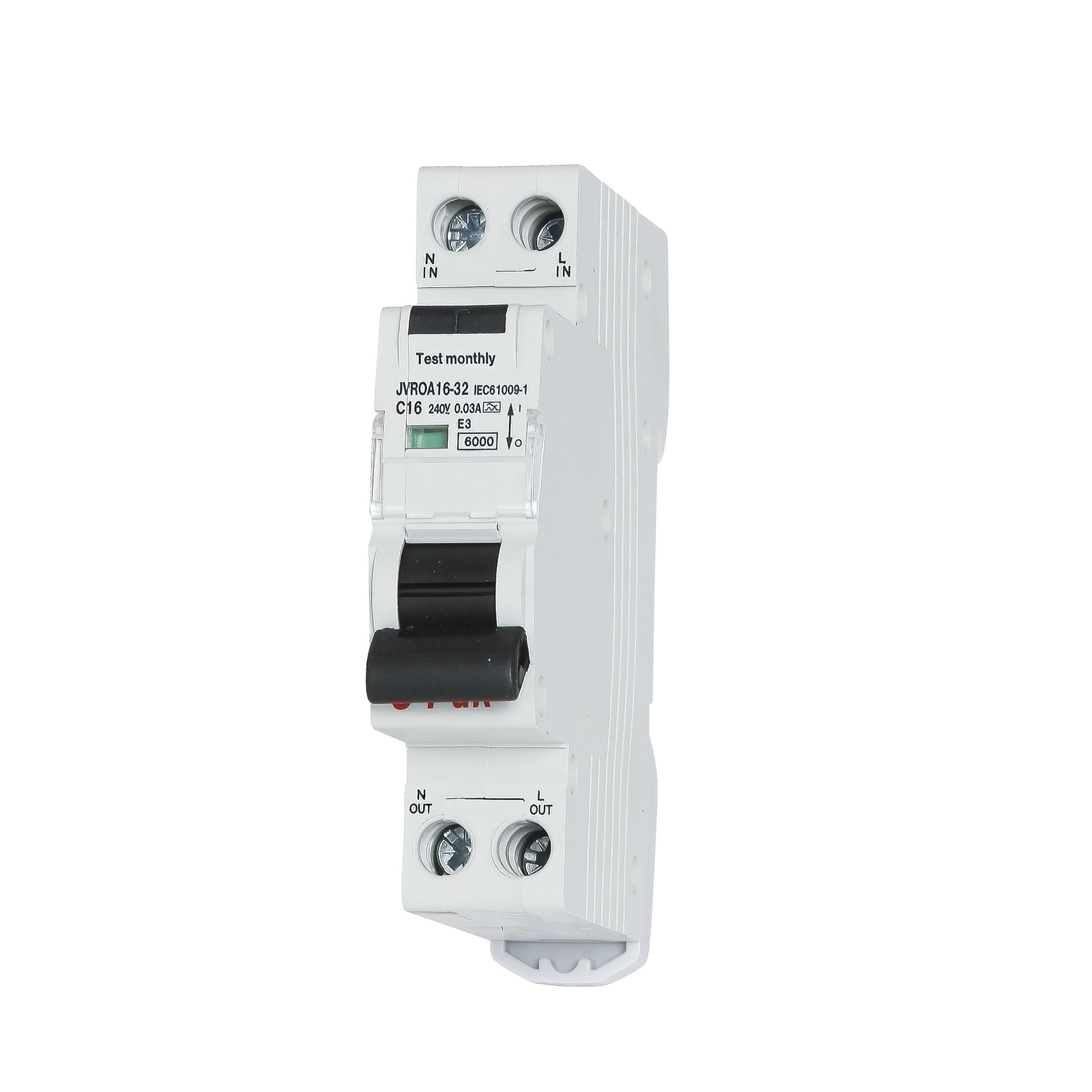 Range: JVROA Number of modules: 1 Number of poles:2 (1P+N) Voltage rating:AC 230V Amp rating:multiple options (see drop down menu) Type:A Curve: multiple options (see drop down menu) mA: 30 Standard: IEC 61009-1, GB 16917.1