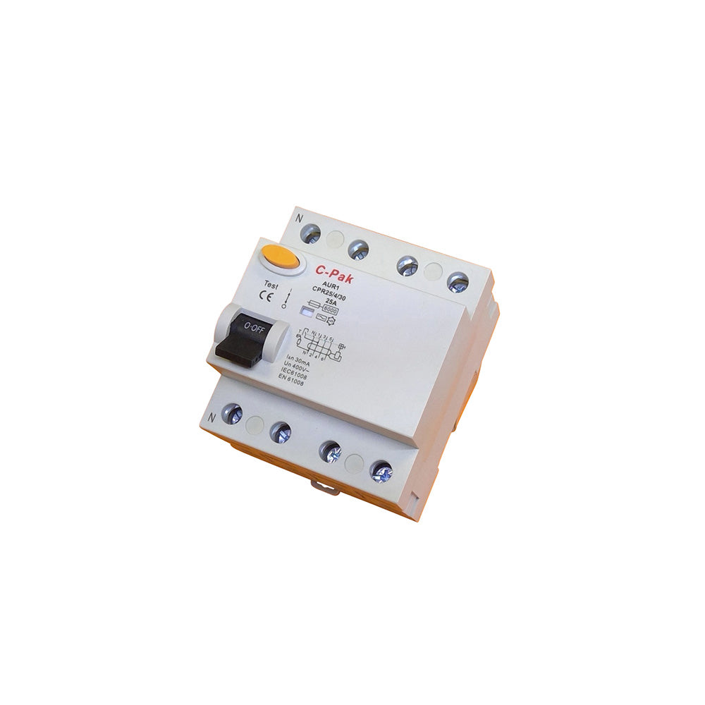 Product range: CPRTD (RCCB/RCD) Number of poles: 4 Rated Current: See drop down menu for options Rated Voltage: AC 400VMounting: 35mm Din rail Standard: IEC 61008-1, EN 61008-1